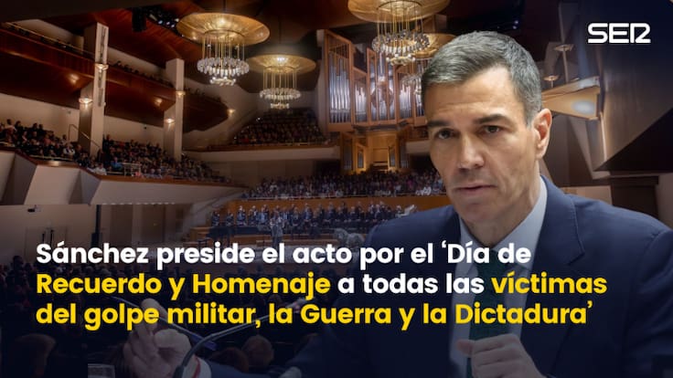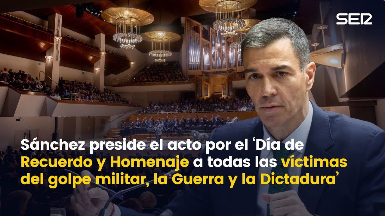 El presidente del Gobierno, Pedro Sánchez, ha intervenido este viernes al final del acto con motivo de la celebración del 'Día de Recuerdo y Homenaje a todas las víctimas del golpe militar, la Guerra Civil y la dictadura', un evento que se celebrará en el Auditorio Nacional de Música de Madrid. "La grandeza de nuestro país reside en nuestra capacidad para levantarnos de cualquier adversidad y emerger más fuertes", ha comenzado diciendo tras recordar el homenaje de esta misma semana a las víctimas de la DANA.