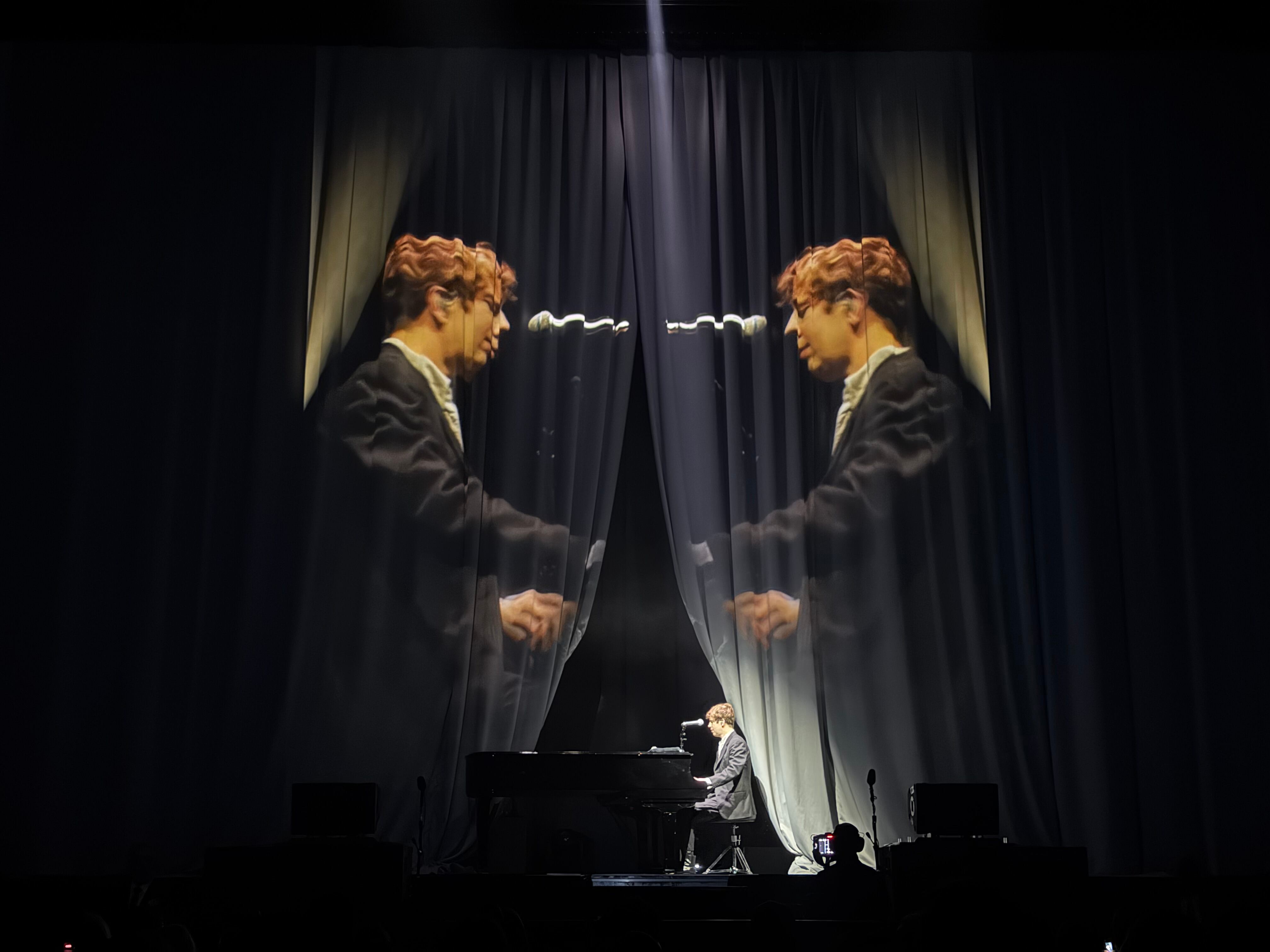 Empieza así la parte más íntima del A Wonderful Life Tour: solo él, el piano y una voz que ocupa todo el escenario. Ni siquiera se escucha al público cantar. Nadie quiere romper ese momento de comunión con el artista, que interpreta algunos de sus temas introspectivos, como Ugly o Flying. “Hoy es una noche muy especial para mí. Es un placer estar en Madrid”, asegura.