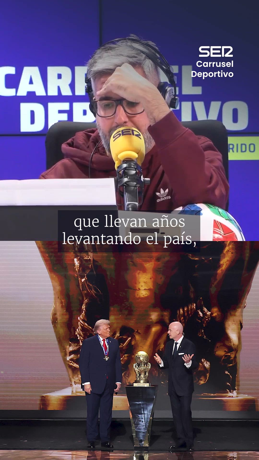 En Carrusel Deportivo, Dani Garrido no ha tardado en poner voz a la controversia generada por este galardón. Con tono crítico, ha recordado episodios recientes para contextualizar con ironía algunos méritos del presidente de Estados Unidos para ser acreedor al premio. "Van a anunciar a Trump, ejecutor de redadas para sacar de Estados Unidos a inmigrantes que llevan años levantando el país, que le dijo a Netanyahu con una sonrisa de oreja a oreja que habían usado bien las armas de EEUU, que tildó de 'cosas que pasan' el asesinato de Khashoggi o que llama estúpida tres veces a una reportera en sala de prensa tres veces. A partir de ahí, podríamos continuar. Es el merecedor para Gianni Infantino del premio FIFA de la Paz", ha lamentado Garrido. "Es tan chusco que se parece a la Copa del Mundo", ha añadido sorprendido.