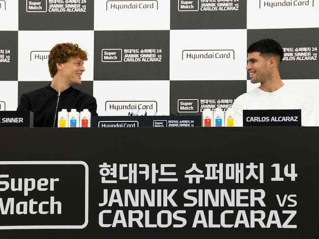 Jannik Sinner y Carlos Alcaraz en la rueda de prensa previo al duelo en Seúl / JEON HEON-KYUN (EFE)