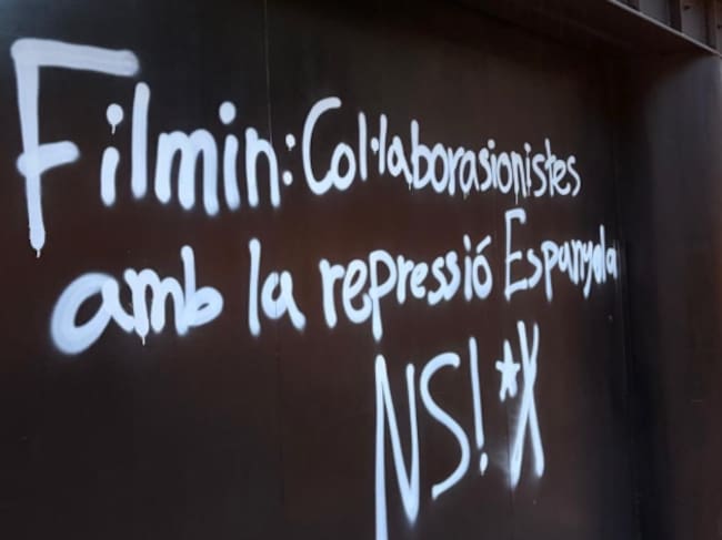 El director editorial de Filmin, Jaume Ripoll, ha compartido una imagen en su perfil de X donde muestra las pintadas en la pared de las oficinas con el mensaje "Filmin: colaboradores con la represión española". "Qué triste llegar a la oficina y encontrarnos esto. Bastante hecho polvo, la verdad", ha escrito, en un mensaje.