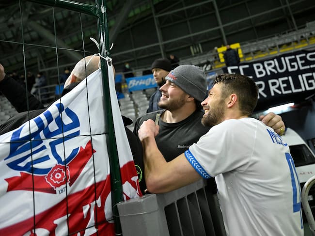 Gestos de cariño de la plantilla del Brujas hacia los aficionados desplazados a Almaty / Photonews