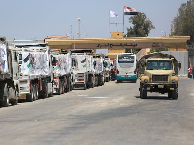 Camiones con ayuda humanitaria en el Paso de Rafah / Anadolu