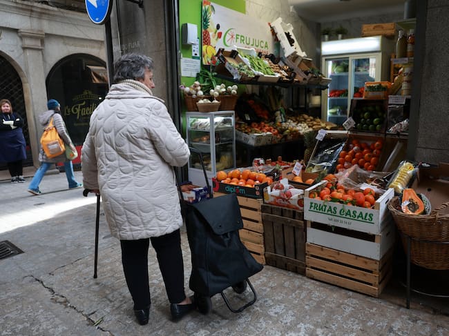 Una mujer observa los productos de una frutería en Toledo