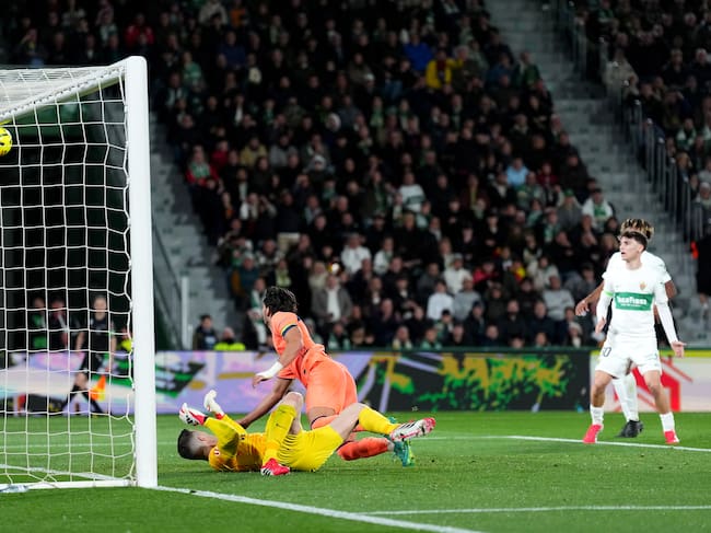 La maldición del palo continúa en el FC Barcelona. Los culés vivieron una primera mitad de lo más inusual en su visita al Martínez Valero. En apenas treinta minutos de partido, los azulgrana estrellaron el balón en la madera hasta en 3 ocasiones, 2 de ellos en la misma acción, un reflejo de la enorme presión ofensiva del equipo, pero también de su mala fortuna frente a portería.