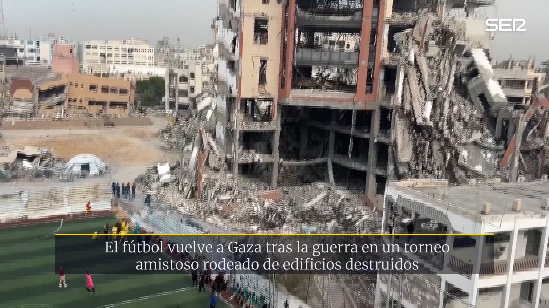 El fútbol se abre paso entre la destrucción que asola Gaza. El deporte ha regresado a la Franja más de dos años después y en medio de un frágil alto el fuego. Varios equipos palestinos se han enfrentado en el 'Yarmouk Stadium' en un torneo de fútbol en el que competían cinco contra cinco. El evento a congregado a decenas de personas, que en rodeados de edificios en ruinas, han disfrutado de un momento de desconexión.