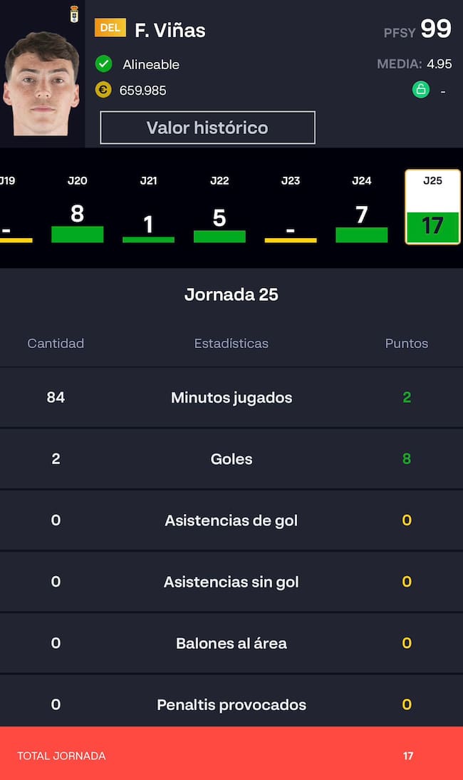 Jugadores con más puntos de la jornada 25