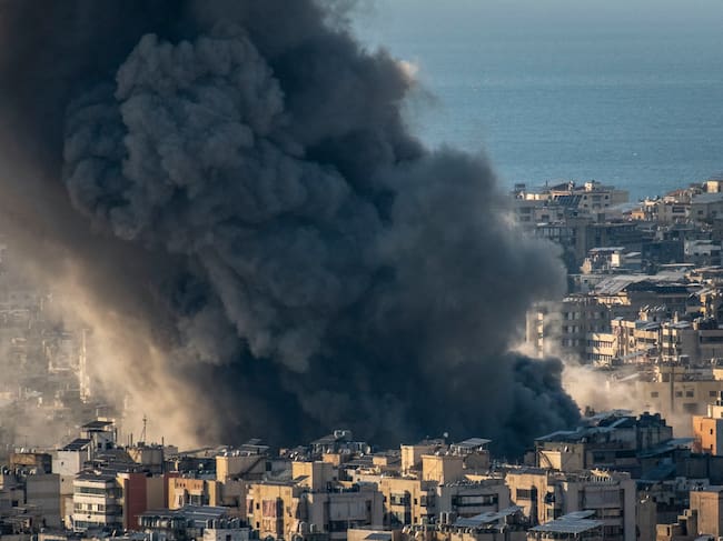 Una columna de humo se eleva tras ataques israelíes en el suburbio sur de Dahye en Beirut, Líbano, país afectado por la ofensiva en Irán. / EDGAR GUTIERREZ (EFE)