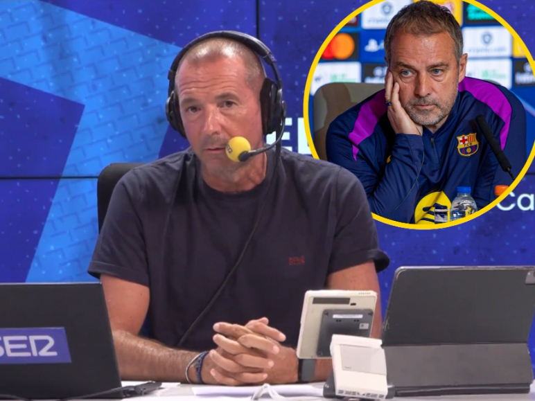 "Por momentos noto que a Hansi Flick se le está poniendo cara de Xavi Hernández. Quejarse de los árbitros, el césped... por un momento he cerrado los ojos y he visto a Xavi. Que si el arbitraje de la ida, que a ver el arbitraje de mañana... le hemos visto hablando con los responsables de la UEFA sobre como estaba el césped del Metropolitano. Es algo que me ha sorprendido, en otros entrenadores no era tan raro, pero en Hansi Flick me ha sorprendido. Supongo que toda la presión que se pueda meter en la previa les viene bien a sabiendas de todo lo que hay en juego".