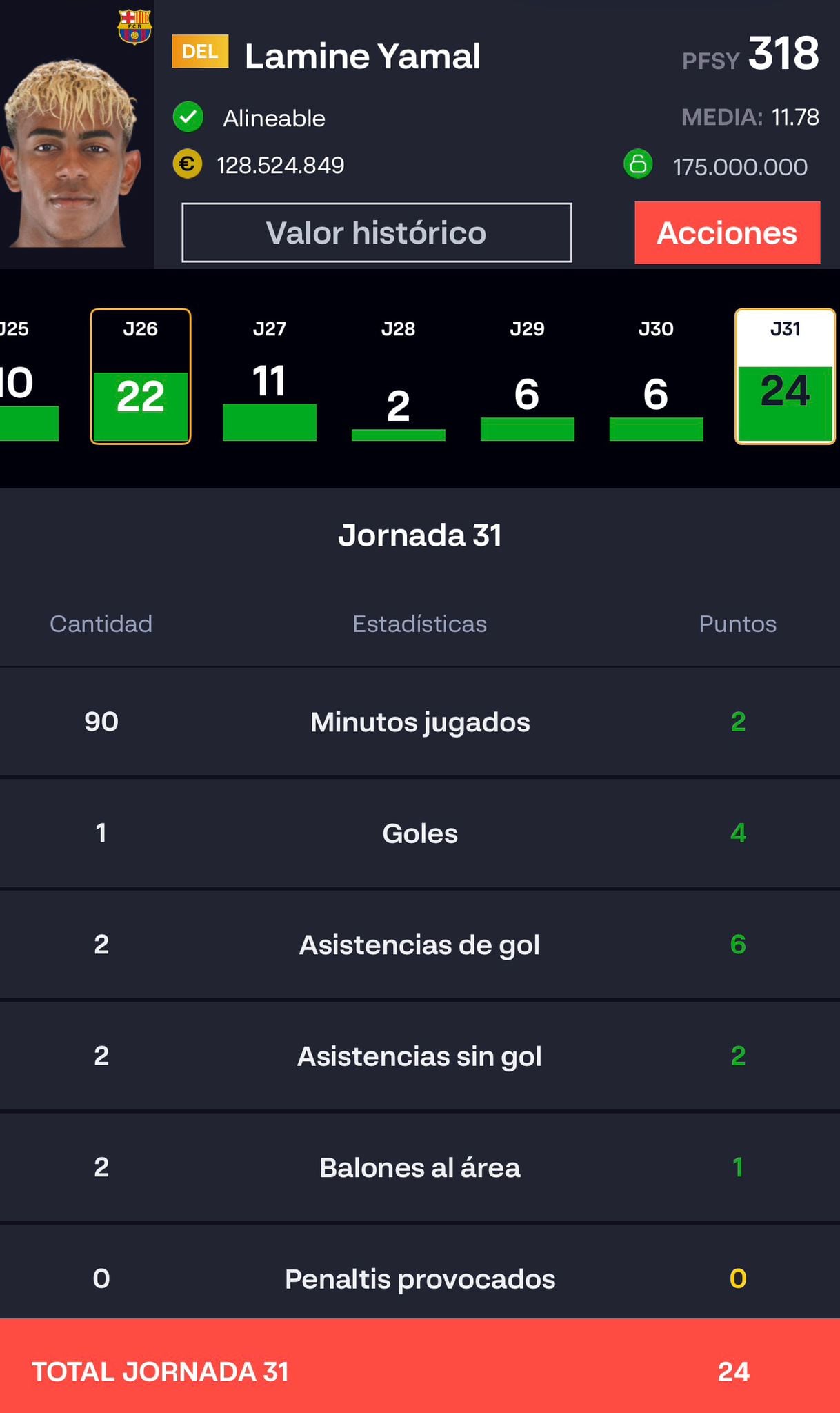 1- Lamine Yamal (FC Barcelona): 24