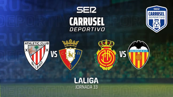 LaLiga EA Sports recupera este martes el protagonismo que le arrebató la final de la Copa del Rey el último fin de semana y lo hace con dos citas simultáneas. En esta ocasión, los focos se reparten en Bilbao y en Palma de Mallorca a partir de las 19:00 (hora peninsular española). San Mamés será testigo de un duelo del norte muy parejo y con el sueño europeo al alcance de la mano para Athletic Club y Osasuna. También impera la equidad en la previa de Son Moix, aunque en vistas de un choque mediterráneo con voz directa en la carrera por la permanencia de RCD Mallorca y Valencia CF. Toda la emoción de estos partidos la trasladaremos a Carrusel Deportivo, con Dani Garrido al frente del equipo líder de la radio deportiva española.