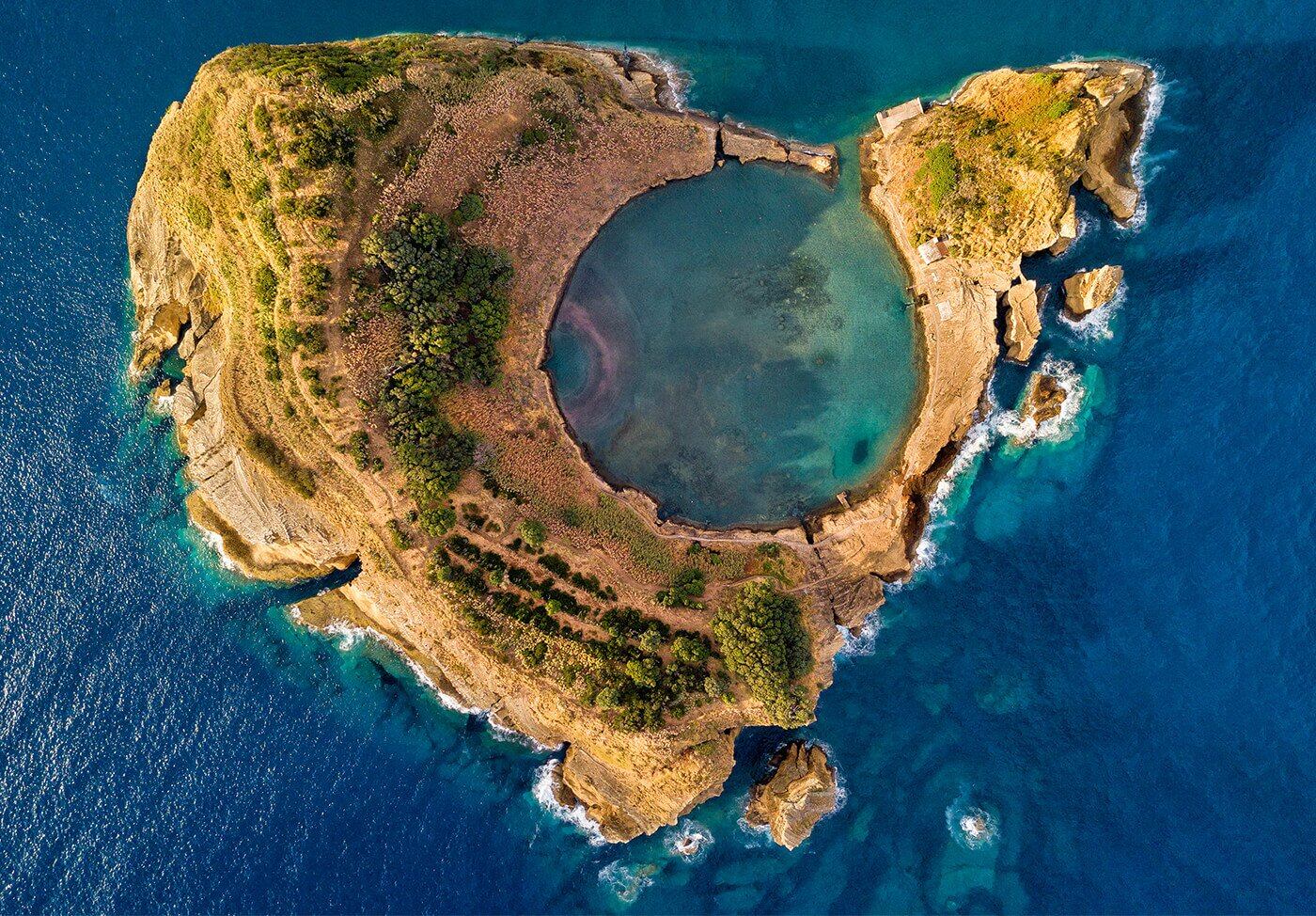 En medio del Atlántico, frente a la costa de São Miguel, la isla principal de las Azores, se encuentra uno de los lugares más sorprendentes de Europa. El islote de Vila Franca do Campo, conocido localmente como Boquete, alberga una piscina natural con una forma circular casi perfecta que parece salida de un sueño.