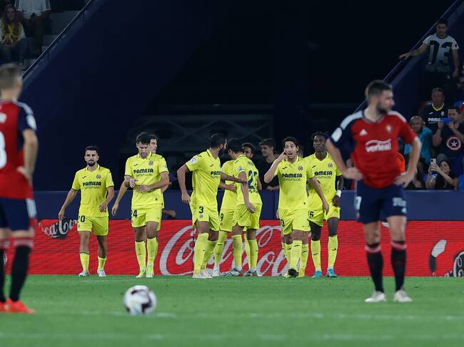 Los jugadores del Villarreal celebran el segundo gol ante Osasuna, durante el partido en el estadio Ciutat de Valencia / Domenech Castelló (EFE)