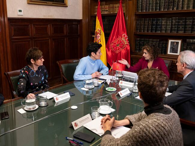 MADRID, 28/12/2022.- La ministra de Hacienda y Función Pública, María Jesús Montero (fondo), preside la reunión de la Comisión Coordinadora del Convenio Económico de Navarra, con la asistencia de la consejera de Economía y Hacienda, Elma Saiz (2i), este miércoles en la sede del Ministerio. EFE/ Fernando Villar / FERNANDO VILLAR (EFE)