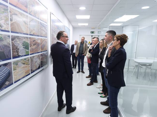 El presidente de Ríos Renovables, Adalberto Ríos junto a personal directivo, muestra las plantas fotovoltaicas que gestiona la empresa / Gobierno de Navarra