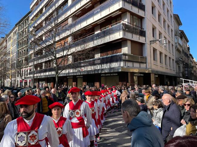 Coincidiendo con la celebración de San Blas, el grupo municipal de dantzas Duguna -Iruñeko Dantzariak ha bailado la soka-dantza en el paseo de Sarasate. Los dantzaris han ejecutado esta coreografía tradicional emparentada con las danzas en cadena, branles y farandoles que se bailan en el sureste de Europa desde, al menos, el final de la Edad Media y cuya evolución regional ha dado lugar a tradiciones coreográficas locales.