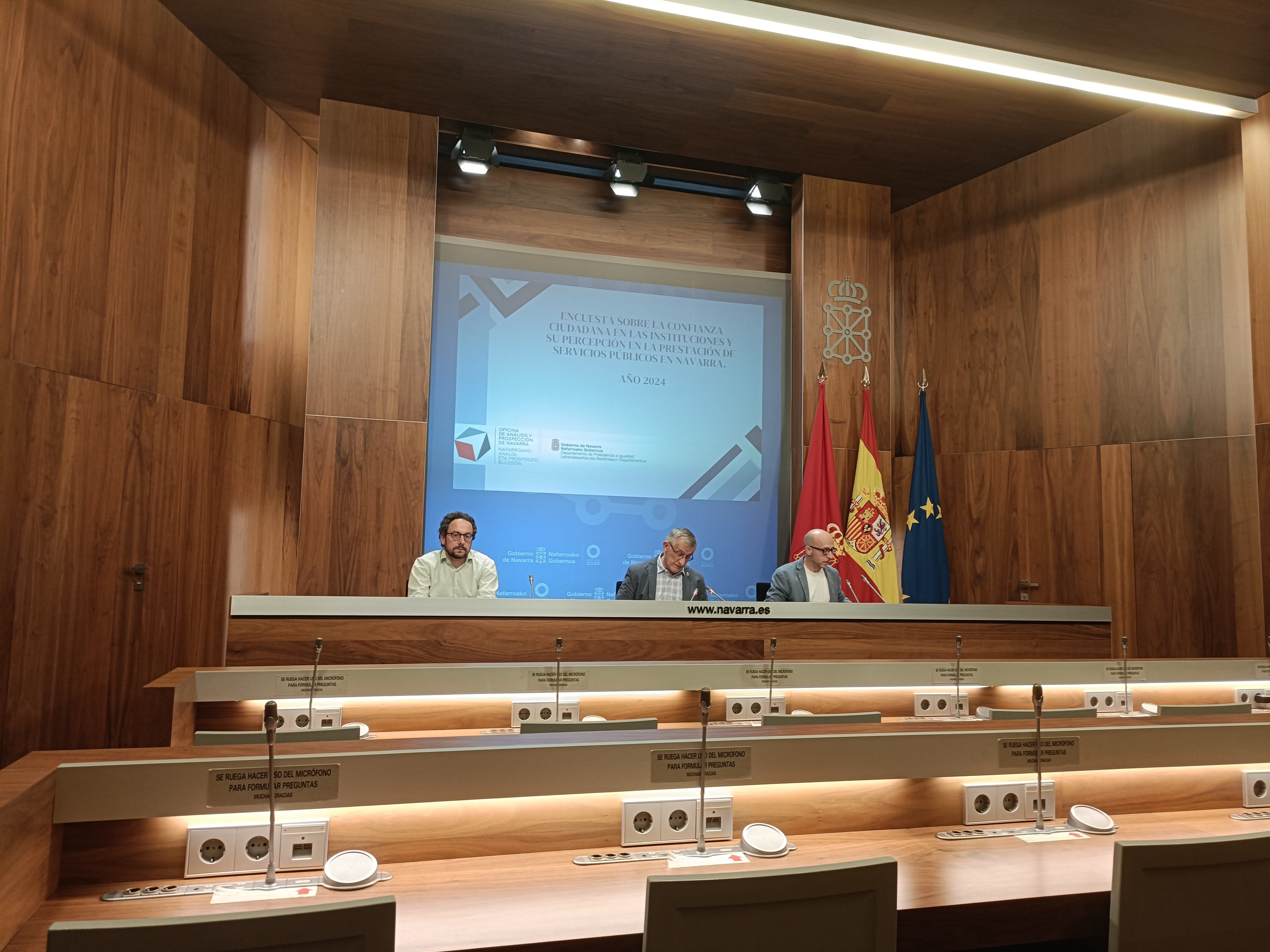 En la rueda de prensa, el vicepresidente ha estado acompañado por Txerra García de Eulate, director gerente de la Oficina de Análisis y Prospección, y Joseba Asiain, director general de Presidencia, Gobierno Abierto y Relaciones con el Parlamento de Navarra.