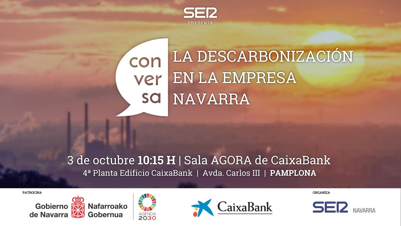 Nueva edición de SER Conversa, en esta ocasión para hablar de la descarbonización en la industria navarra para conocer los proyectos más relevantes en el área y la realidad actual. Jornada que ha acogido la sala Ágora de Caixabank en Carlos III, en Pamplona, que cuenta con la la colaboración del Departamento de Industria y Transición Ecológica y Digital Empresarial del Gobierno de Navarra y CaixaBank.