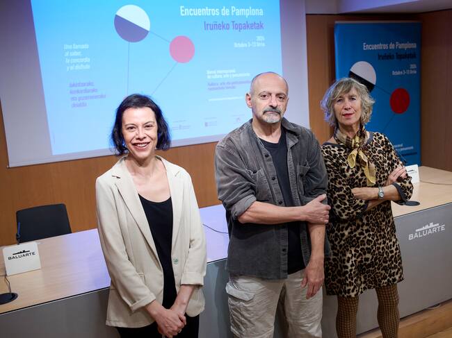 Con la fórmula recicladora de residuos habitual en su trabajo, la artista navarra Alicia Otaegui participa en los Encuentros de Pamplona con una propuesta que ofrece un mosaico representativo de lo que es esta iniciativa cultural, en la que destacan los valores de "apertura, diversidad y posibilidad de repensar". Lo ha dicho la propia artista en rueda de prensa, en la que ha explicado que la instalación que se exhibe en la fachada de Casa Seminario con motivo de los Encuentros de Pamplona nace en realidad de los Encuentros de hace dos años, ya que ha utilizado las banderolas y lonas que anunciaron aquella edición como material de su propuesta, titulada "Ventanas abiertas".