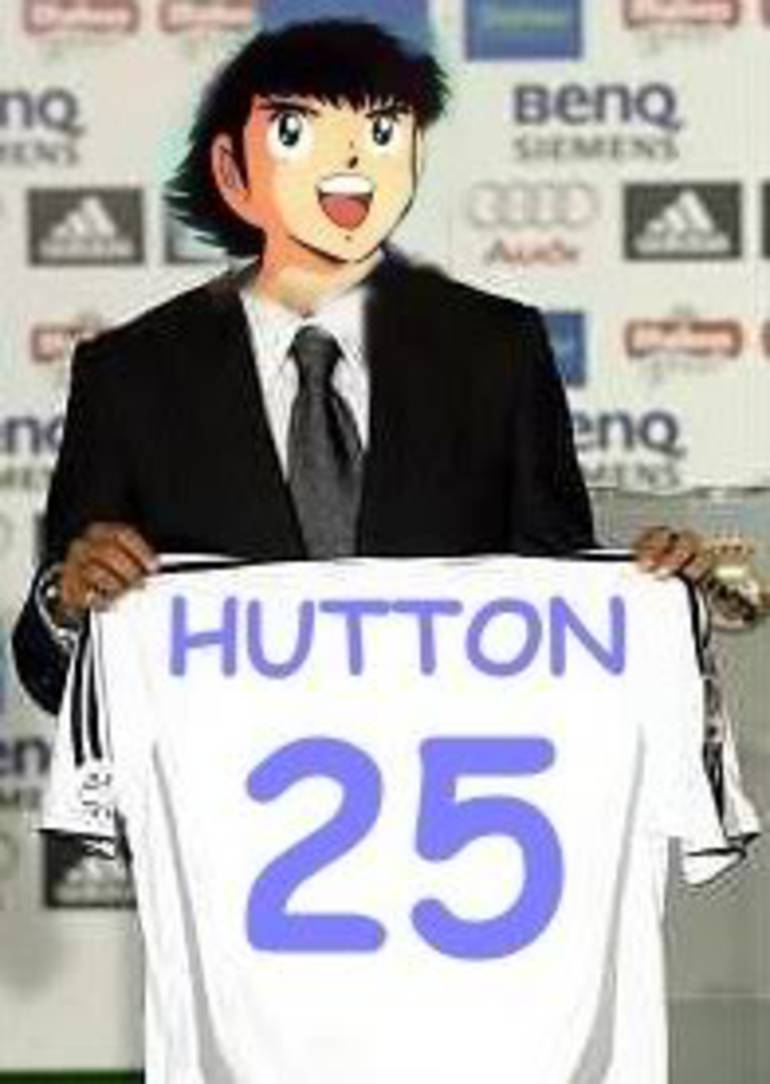 Ya estoy viendo a Florentino en el escenario del Bernabeu, "Hutton fue creado para jugar en el Real madrid, desde sus primeros episodios ya soñaba con vestir nuestra camiseta.....¡ya está entre nosotros Oliver Hutton!" Y claro, la gente como loca en Europa, Asia, América pegándose por las primeras camisetas en salir de la tienda.