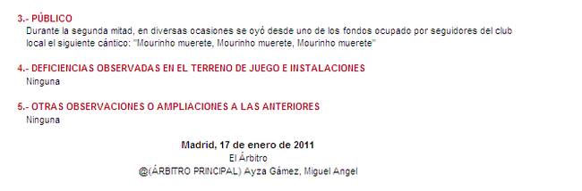 Un sector del Calderón cantó ""Mourinho muérete" tal y como lo recogió Ayza Gámez en el acta