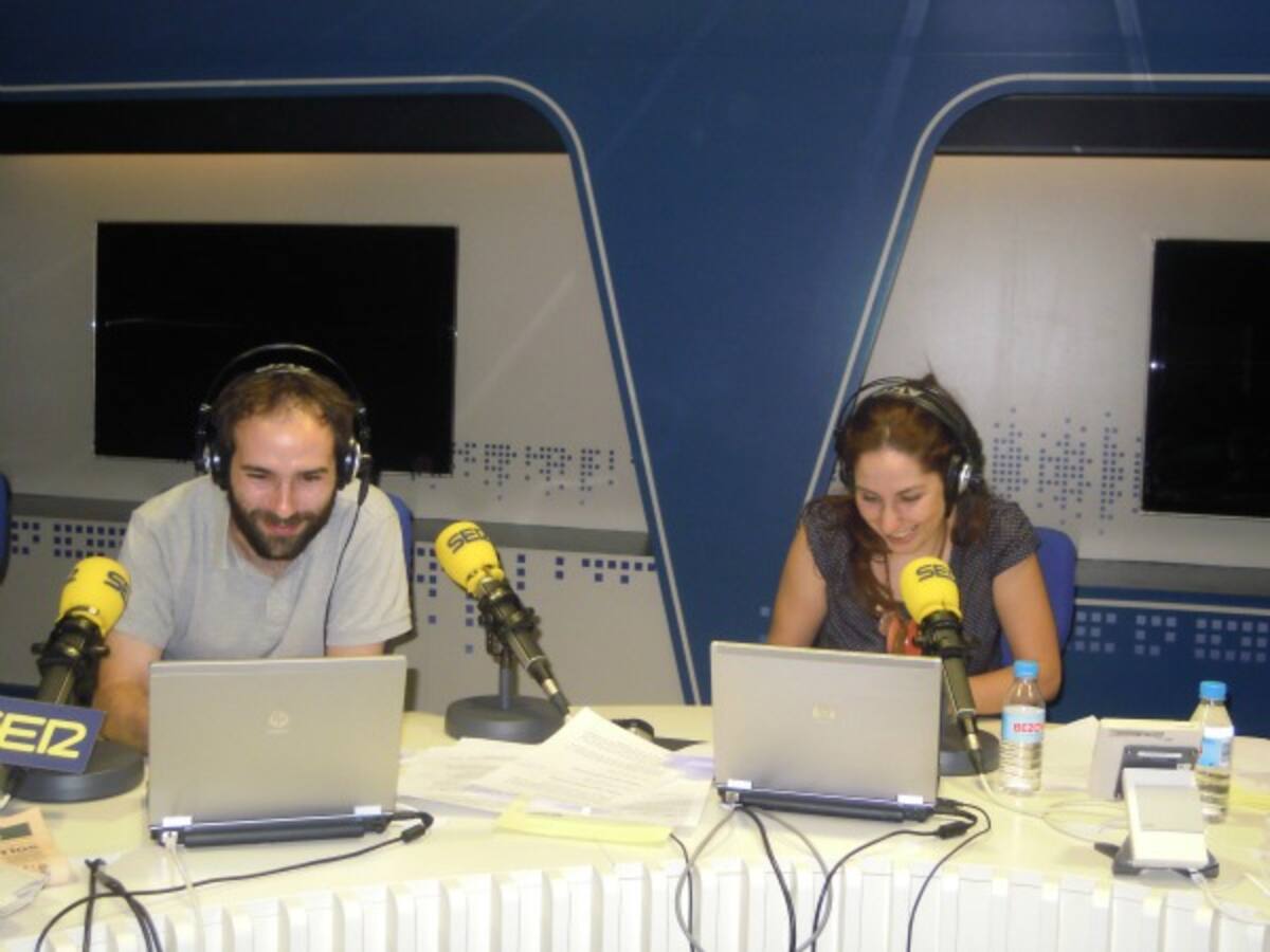 • Javier Carrera y Puri Beltrán en el estudio de Radio Madrid