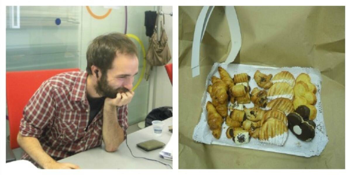 • Hoy. 4 de Julio, es el cumple de nuestro compañero Javier Carrera, y nos ha traído este estupendo desayuno. ¡Muchas felicidades Javi!