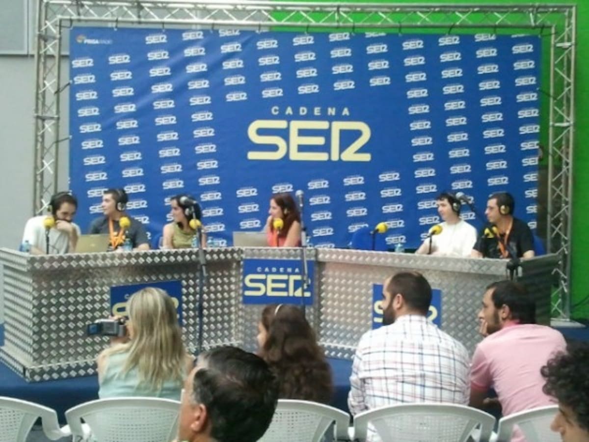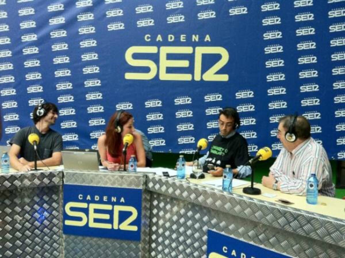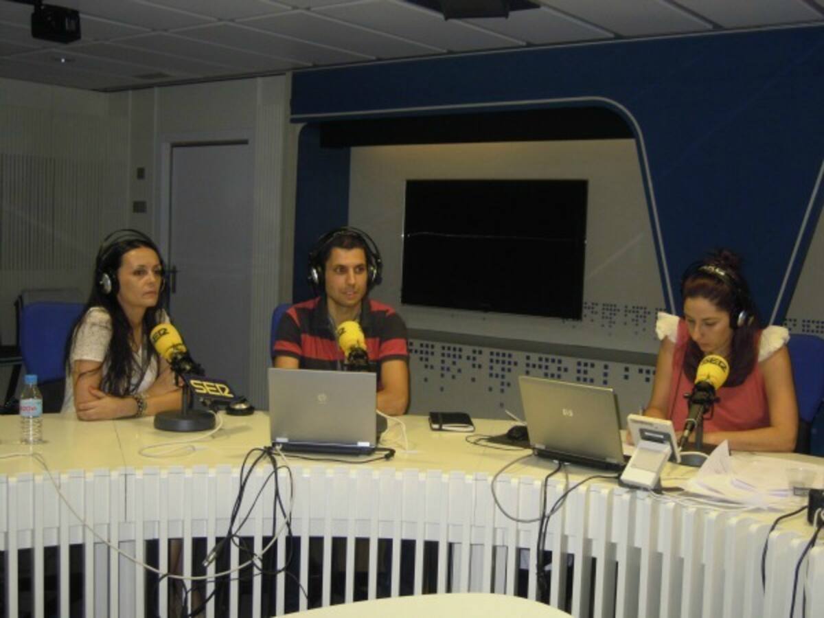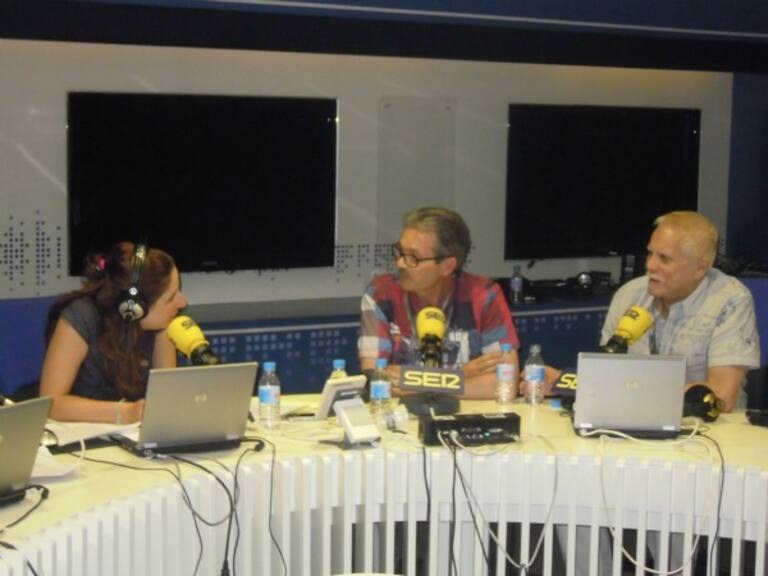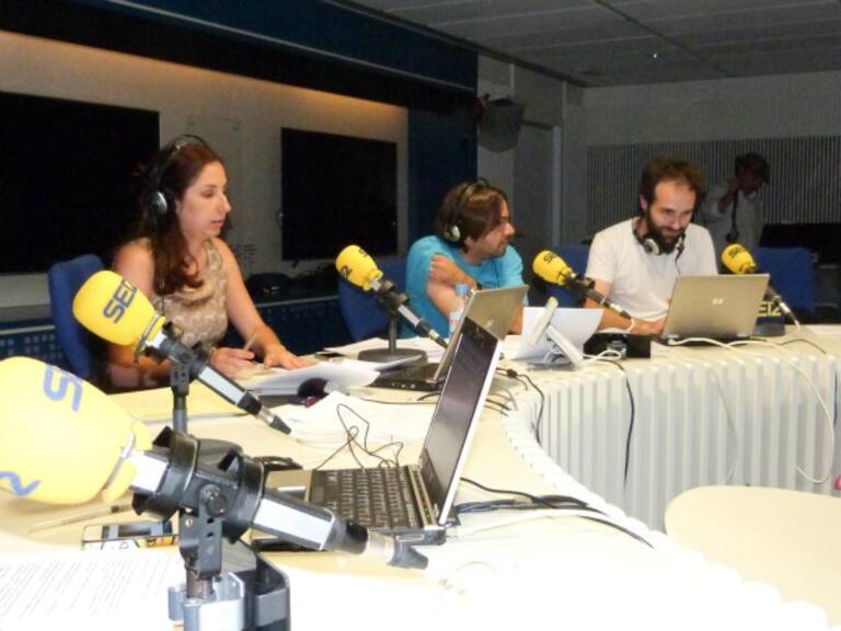 En el estudio de Radio Madrid, en el centro, Puri Beltrán