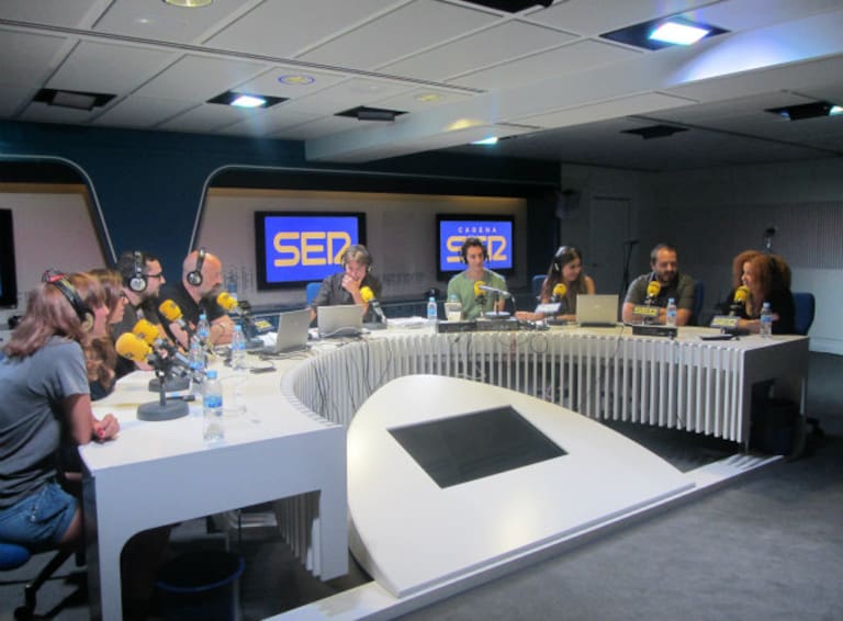 Cómicos: (de izquierda a derecha) Ana Morgade, Llum Barrera, Pedro Aznar, Goyo Jiménez, Javier del Pino, David Broncano, María Gómez, Ricardo Castella y Esther Vidal