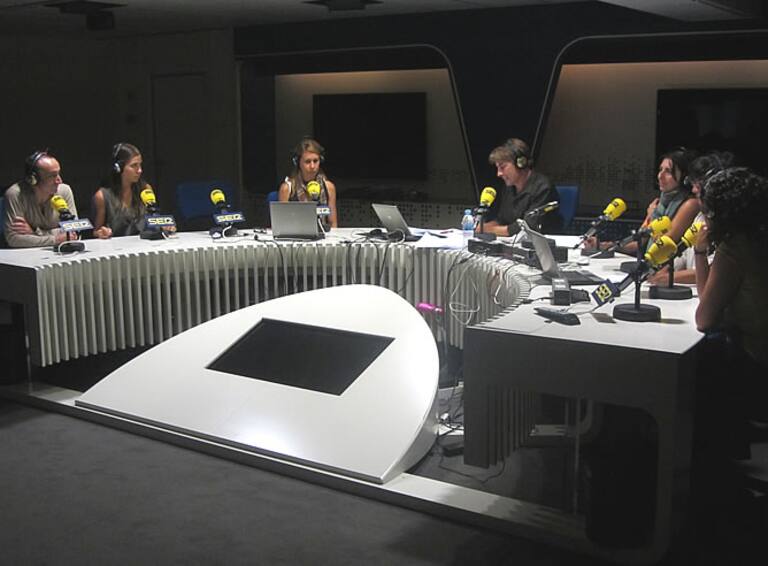 Javier del Pino acompañado de Pedro Rodríguez y Soledad Gallego-Díaz en su estreno al frente del 'A Vivir'