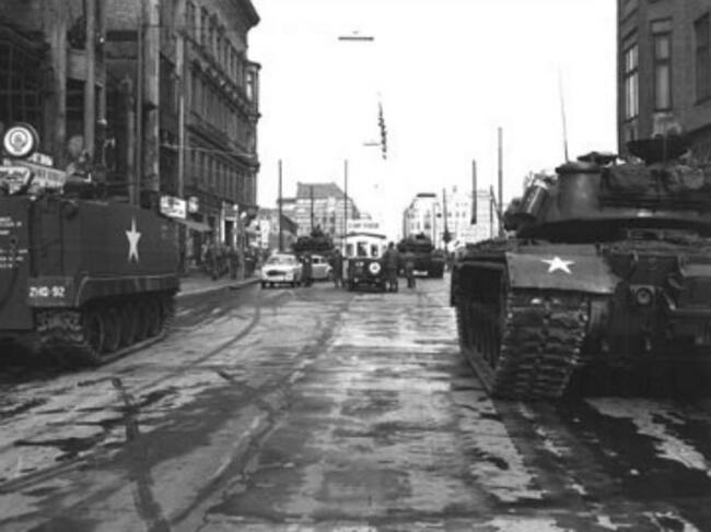 Tanques soviéticos enfrentados a tanques estadounidenses en el Checkpoint Charlie, durante la crisis de 1961