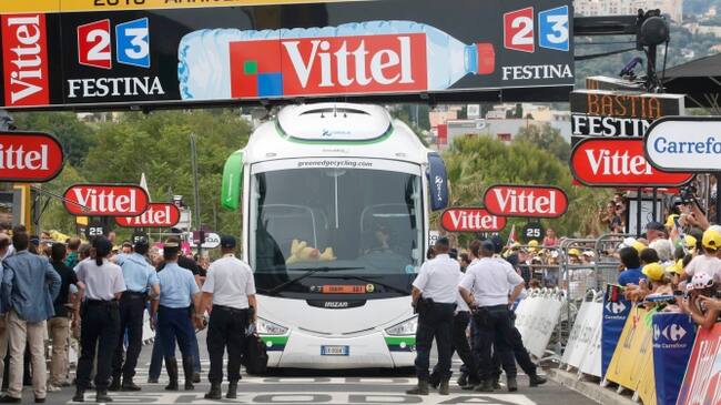 El autobús del equipo Orica se había quedado atrancado bajo el inmenso panel de la pancarta final. Ni para adelante, ni para atrás, a menos de 20 minutos para que llegara el pelotón. Un caos impropio para el Tour de Francia y su organización, que lo tiene todo milimétricamente controlado. Gendarmes y auxiliares corriendo como pollos sin cabeza, buscando y pensando soluciones sobre la marcha, hasta que alguien decidió bajarle presión a los neumáticos del bus, el chófer (al borde de un ataque de nervios) dio marcha atrás y pudimos vivir un final atípico.
