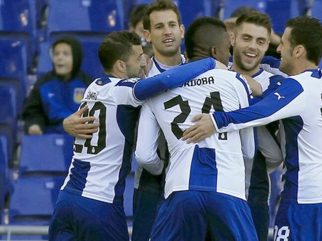 Los jugadores del RCD Espanyol celebran el gol conseguido por Sergio García ante el Real Valladolid en la Liga BBVA.(CADENA SER)