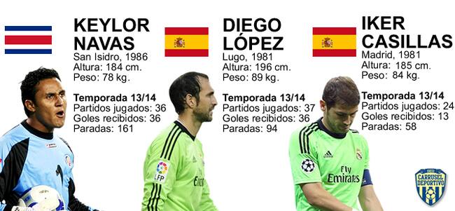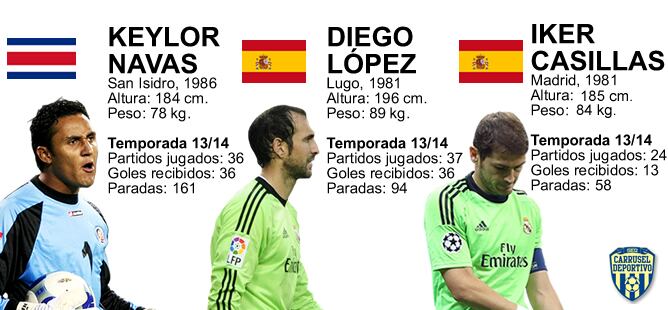 A falta de nueve días para que empiece la temporada oficial para el Real Madrid en la Supercopa de Europa ante el Sevilla, Ancelotti cuenta en su plantilla con tres porteros de primer nivel: Iker Casillas, Diego López y Keylor Navas. Aunque todo indica a que Diego López dejará la disciplina blanca, de momento los tres porteros forman parte de la primera plantilla del Real Madrid, además del canterano Jesús Fernández, que tendría ahora el rol de cuarto portero.