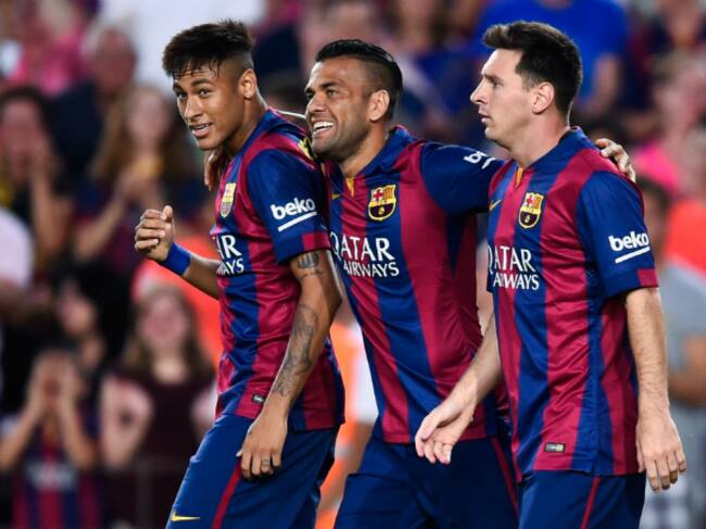 Neymar, Alves y Messi celebran un gol(Getty Images)