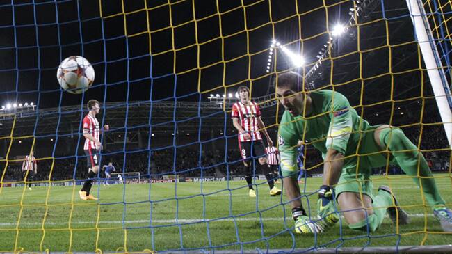 En estas, el Bate Borisov logró adelantarse en el marcador. El zaguero Polyakov aprovechó un despiste de Iturraspe en la marca de un saque de esquina para batir a Iraizoz y adelantar a su equipo. Jugada de estrategia de manual: balón peinado al primer palo y en el segundo se adelanta un jugador y la empuja.
