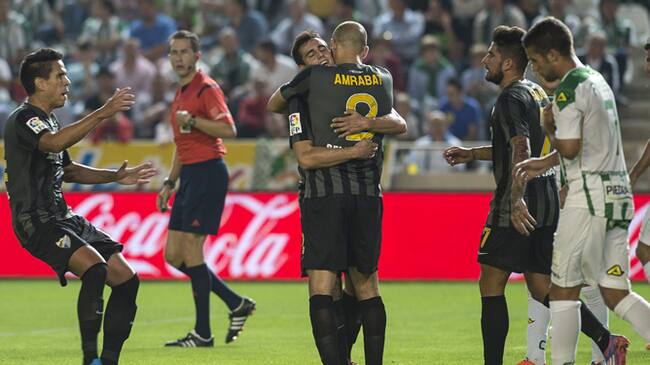 Esa jugada fue el mejor ejemplo del cúmulo de despropósitos del peor Córdoba, que acortó distancias en el cuarto minuto del tiempo añadido, gracias a un bonito tanto de Ghilas, aunque de nada le sirvió a los blanquiverdes, porque el árbitro no dejó ni sacar de centro.