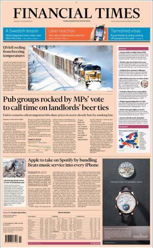 Todo aparece interrelacionado. Financial Times, tras la recaida económica en Japón, dedica un editorial a la eurozona en el que pide soluciones reales para evitar la estagnación de los países que comparten la moneda única. El diario de la City cree que está bien el plan anunciado por Juncker de 300.000 millones para relanzar la economía, pero cree que hara falta mucho más. A falta de dinero, el flamante presidente de la Comisión ofrece transparencia. "Los comisarios deberán hacer público con que lobbies se han reunido", titula DieWelt que la considera "una medida que no será lo suficientemente elogiada" porque supone comenzar a cambiar Bruselas, donde se toman decisiones para la vid cotidiana de los europeos por una "tropa de tecnócratas opaca, incomprensible y sin control". Un apoyo al necesitado Juncker sobre cuya figura planea la moción de censura presentada, entre otros por el UKIP británico. El partido xenófobo come terreno a los conservadores y el Telegraph recoge la advertencia de David Cameron: "O la Unión Europea cambia, o nos vamos".
