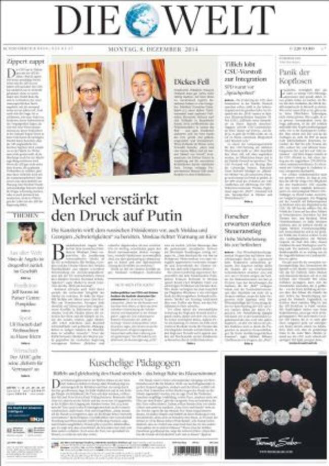 "Merkel mete prisa a Francia para que se reforma" titula esta mañana le Figaro que se hace eco de las declaraciones de la canciller ayer al Welt am Sonntag en las que instaba a París y Roma a cumplir con las reglas presupuestarias europeas ya desde 2015. Y como para tocar aún más la fibra a los franceses, el ministro de Finanzas, Wolfgang Schäuble declara al Süddeutsche que "la canciller Merkel es tan exitosa como Napoleón. Ha demostrado sus habilidades que, aunque menos vitoreadas que en el caso del emperador, tienen el mismo éxito". Quizá por ello Hollande busque su propio hueco y no oculte su satisfacción por el resultado de su encuentro con Putin en Moscú. El Presidente francés parece estar más en sintonía con la opinión pública alemana que Merkel quien es criticada en Die Welt por su actitud belicosa y debe enfrentarse a una carta firmada por 64 personalidades que reprochan a Moscú la anexión de Crimea, pero sostienen que "no debemos empujar a Europa contra Rusia".