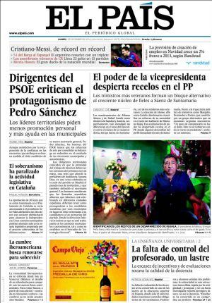 "Discretos contactos de PP y PSOE para facilitar un pacto poselectoral". La información la firma en el Mundo Lucía Méndez que da cuenta de que dirigentes de ambos partidos reconocen que "el tema está en todas las conversaciones de las personas serias, pero por razones de estrategia no puede figurar en la agenda pública". La hipótesis de un gobierno de coalición no es descartada del todo porque, como señala un veterano dirigente socialista, "estamos en un magma volcánico que va a explotar pero no sabemos hacia dónde". En ebullición parece estar también el gobierno a tenor de la información que, en este caso, firma Carlos Cué en El País: "el poder de la vicepresidenta despierta recelos en el PP". "Los nombramientos de Alfonso Alonso y Rafael Cardenal en Sanidad y Justicia han reforzado el poder tecnocrático de Saénz de Santamaría en el Consejo de Ministros en detrimento de los titulares de Exteriores e Interior, Margallo y Fernández Díez, que constituyen un grupo alternativo que organiza reuniones. "Un poco de conspiración no hace daño porque este es un gobierno unido en torno al Presidente", sostiene un ministro.