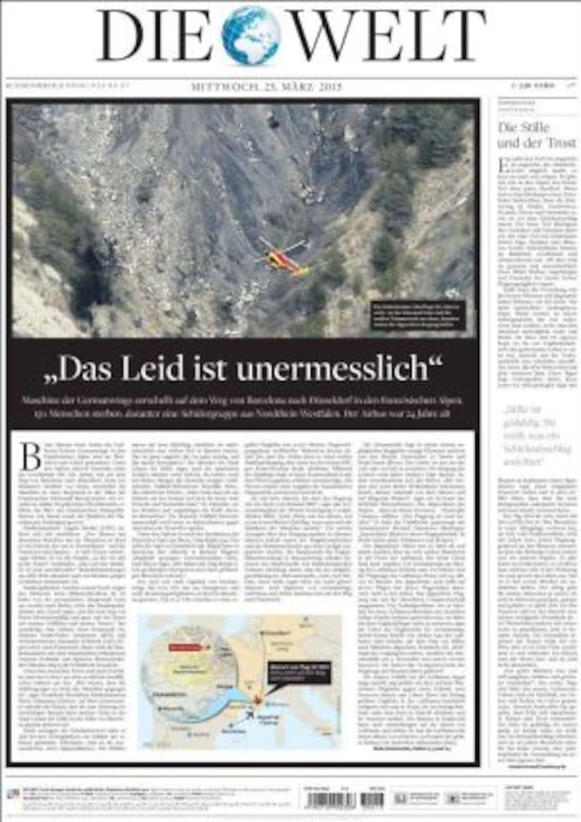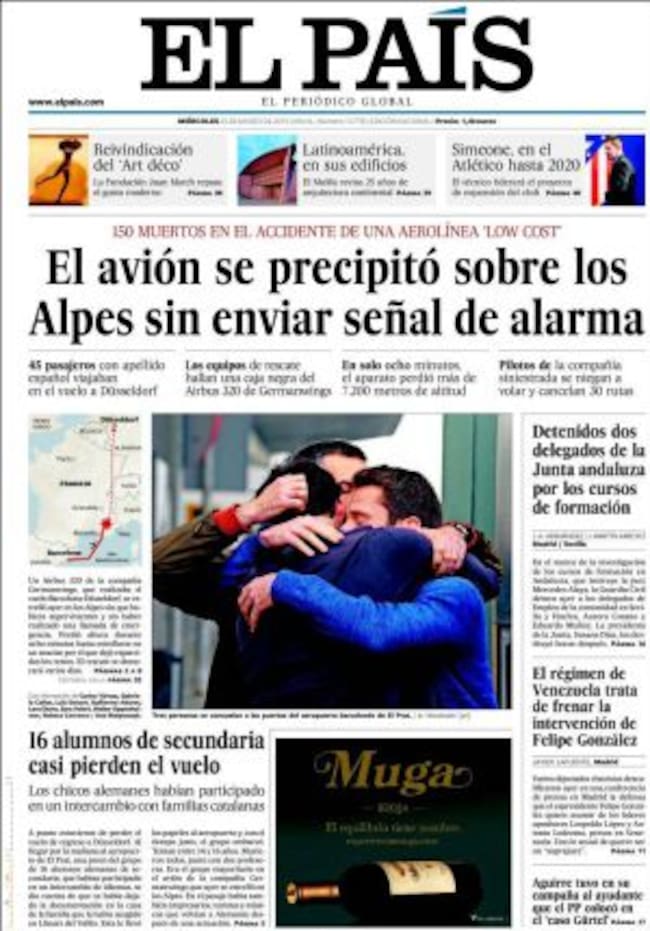 "La muerte de 150 personas ya es irreversible. Pero la respuesta a todos los niveles todavía se está escribiendo", concluye El País en un editorial tras reseñar en primera que "el avión se precipitó sin enviar señal de alarma". Esa ausencia de comunicación es el principal interrogante y causa de angustia porque como reflexiona Ignacio Camacho en ABC: "para la sociedad de los mitos indoloros la cara más amarga de las catástrofes es la incertidumbre sobre los motivos". Así que Le Figaro y Die Welt desgranan y analizan una serie de posibilidades: desde una despresurización brutal de la cabina hasta el atentado, aunque las autoridades privilegian la hipótesis de un accidente, aclara el diario francés. Liberation entrevista a Gerard Arnoux, comandante de vuelo, quien deplora que la formación de los pilotos sean cada vez menos adaptada. En este sentido, Gustavo Barba, vicedecano del colegio de pilotos, escribe un análisis en El País en el que apunta al "virus de la inseguridad aérea" lo que provoca que "el uso masivo de la tecnología hage que los pilotos pierdan habilidades de vuelo manual". No del todo porque como señala Der Spiegel, en noviembre, un avión similar de Lufthansa que cubría la ruta entre Bilbao y Munich perdió altura de manera muy rápida por un fallo técnico, pero los pilotos controlaron la situación. Unos pilotos que, como señala el Süddeutsche, se encuentran en conflicto con la dirección de la compañía alemana. De hecho, German Wings desaparecerá como marca y será reemplazada por otro consorcio del grupo: Eurowings".