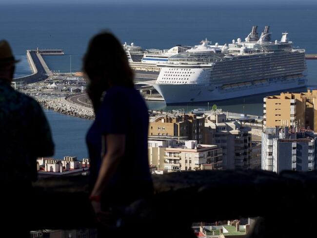 GRA180. MÁLAGA, 29/04/2015.- Unas personas observan el 'Allure of the Seas' de Royal Caribbean, el crucero más grande del mundo con capacidad para más de 6.300 pasajeros, tras llegar al puerto de Málaga, el primero en su escala en Europa procedente del Ca / Daniel Pérez (EFE)