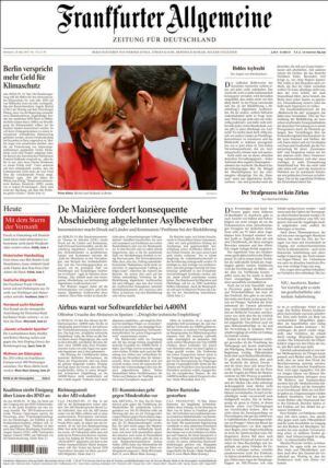 Es "la cacofonía de las cuotas", resume en primera Liberation que en su editorial explica que se trata de un "enigma envuelto en el misterio, arropado por una niebla semántica, sazonada de una ambigüedad borrosa... Inflexible pero abierta... Manuel Valls rechaza la idea de "cuotas", pero deja que si gabinete de comunicación hable de "cuota-parte". El problema es que si acepta, parís vería incrementar el actual 11% de refugiados al 14 con el rechazo del partido de Sarkozy y del Frente Nacional. Los conservadores alemanes entienden la idea. En el Frankfurter Allgemaine, Jasper von Altenbockum considera que las cuotas vacían el derecho de asilo.