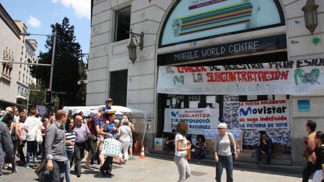 Trabajadores de Movistar han ocupado la tienda de la campañía en el centro de Barcelona como medida de protesta