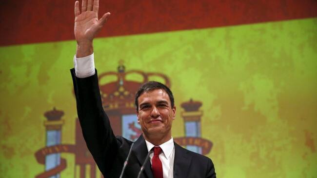Spain's Socialist Party PSOE leader Pedro Sanchez waves during a meeting in Madrid, Spain, June 21, 2015. Spain's opposition Socialists on Sunday named party leader Sanchez to run for prime minister in a general election, due by the end of the year, which / JUAN MEDINA (Reuters)