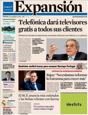 "Por una Europa más competitiva" es el titulo de la tribuna que ambos firman en Expasión y en la que abogan por "una verdadera reforma de la eurozona sin que ello vaya en detrimento de los derechos de los miembros de la Unión Europea que no forman parte de la moneda común". Reformas también pidió ayer Mario Draghi, que considera que los gobiernos van a cámara lenta en su aplicación. El Presidente del BCE, en cualquier caso, titula Cinco Días: "se prepara para actuar si la debilidad de China se agrava".