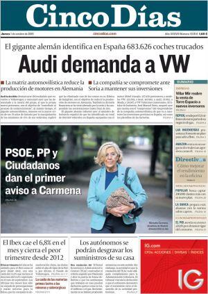 "Rajoy prepara una fuerte renovación en las listas del PP", anuncia La Razón, siempre bien informado sobre la Moncloa. "La vicepresidenta iría de número dos por Madrid y está por cerrar el puesto de Cospedal". También lo está el de Eduardo Madina en la lista del PSOE, aunque La Vanguardia de por hecha la inclusión del vasco e interprete como un gesto a Cataluña que Meritxell Batet vaya de número dos. No obstante, la principal novedad, como destaca El País con una foto, es la inclusión de Zaida Cantera, la excomandante que sufrió acoso de un superior en el Ejército. No obstante, en un editorial este diario reclama al PSOE definir su espacio frente al radicalismo de Podemos y aclarar los planes políticos y económicos si quiere aprovechar la oportunidad para ganar las elecciones de diciembre.