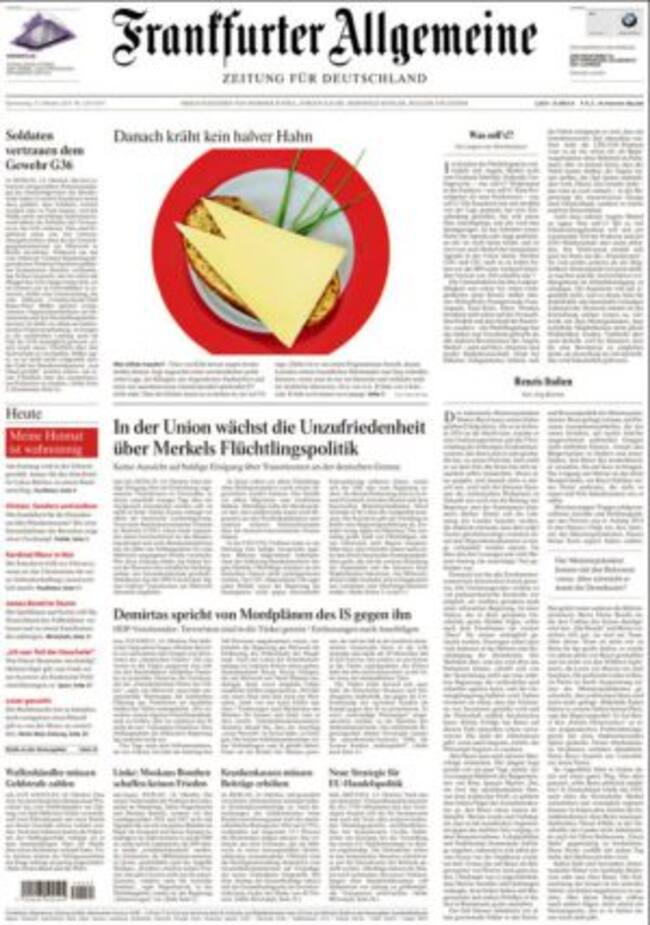 Hasta el punto que el Bild se pregunta ya públicamente si el todopoderoso ministro de Finanzas, Wolfgang Schäuble, respalda a la canciller que, como constata Die Welt, tiene a su principal enemigo al presidente de Baviera y líder del partido social cristiano, Hors Sheehofer, quien la responsabiliza de lo que está sucediendo con los refugiados. El conservador Frankfurter Allgemeine da cuenta esta mañana de una reunión de la CDU en Sajonia en la que algunos de los presentes, venidos de toda Alemania, pidieron el relevo en la presidencia del partido. En este contexto, llega la cumbre de hoy en Bruselas, "amenazada por Erdogan, Putin y Assad", señala Le Figaro. El vicecanciller Sigmar Gabriel y el ministro de Asuntos Exteriores, Frank-Walter Steinmaier, firman una tribuna en El Mundo en la que proponen una mayor colaboración con Turquía y convertir Frontex en "una auténtica autoridad europea de fronteras".