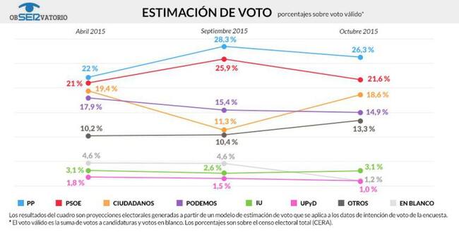 Estimación de voto según el Observatorio de octubre / CADENA SER