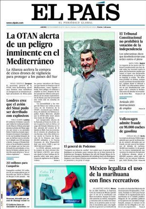 "Sería bonito hacer algo sobre el independentismo catalán, veremos", se escabulle Francisco Ibáñez en la presentación del nuevo álbum de Mortadelo y Filemón, "¡Elecciones!", donde incorpora a Rita Barberá, Pedro Sánchez y Pablo Iglesias pero no al protagonista esta mañana en la prensa nacional: Julio Rodríguez, "el general de Podemos" como le define El País en un pie de foto en la que luce su planta de militar de paisano. Un fichaje que para la prensa conservadora, además de un golpe de efecto, es la demostración, como señala La Razón, de que se aviva la guerra entre el PSOE y el partido morado". Y en el seno del propio Podemos porque Rodríguez en su entrevista a El País asegura: "seguiremos respetando los acuerdos de la OTAN" , cuando Iglesias planteó en estos micrófonos una posible salida de la estructura militar. De hecho, en El Mundo, Victoria Prego considera que "lo impactante es ver hablar de Iglesias con interés de las Fuerzas Armadas".